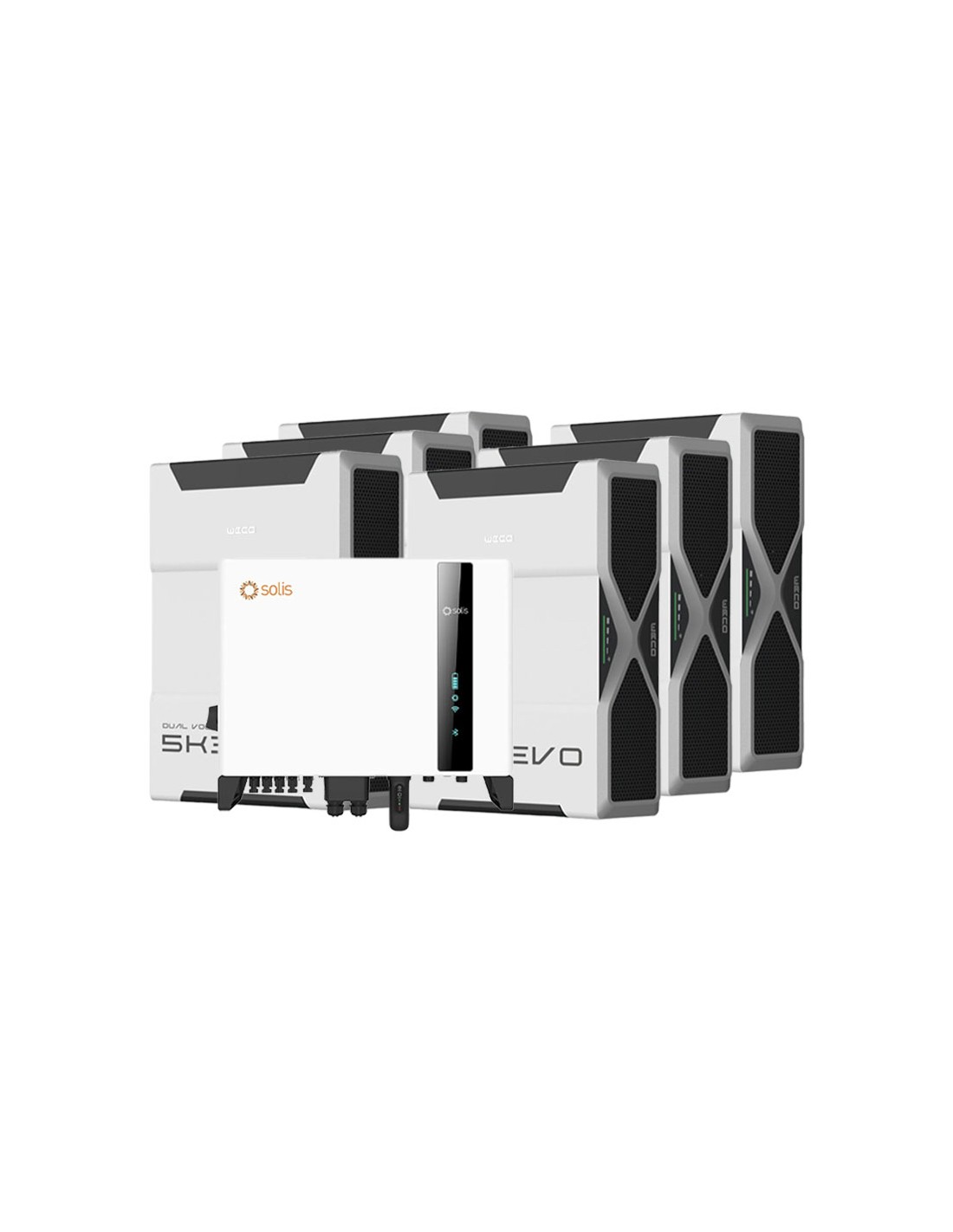 Three-phase storage system 10kW Solis inverter 31.32kWh Weco EVO 5k3 lithium battery