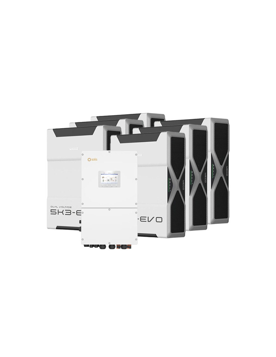 Three-phase storage system 30kW Solis inverter 31.32kWh Weco EVO 5k3 lithium battery