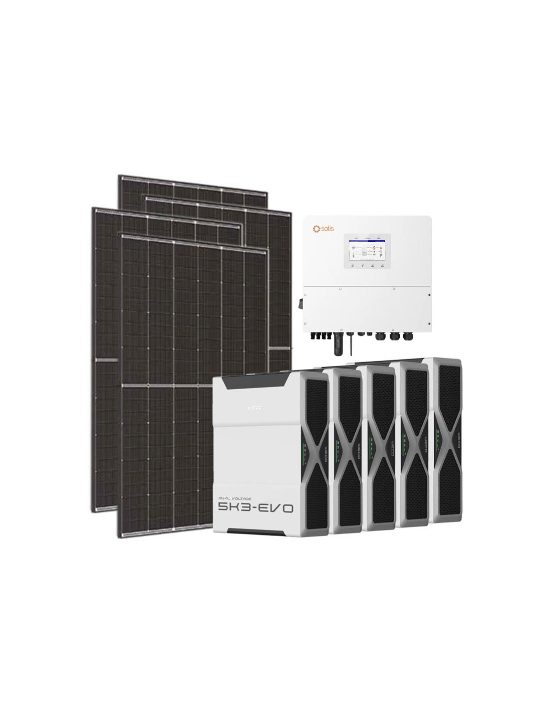 Three-phase photovoltaic kit 15300W 15kW Solis inverter 26.1kWh Weco EVO 5k3 lithium batteries