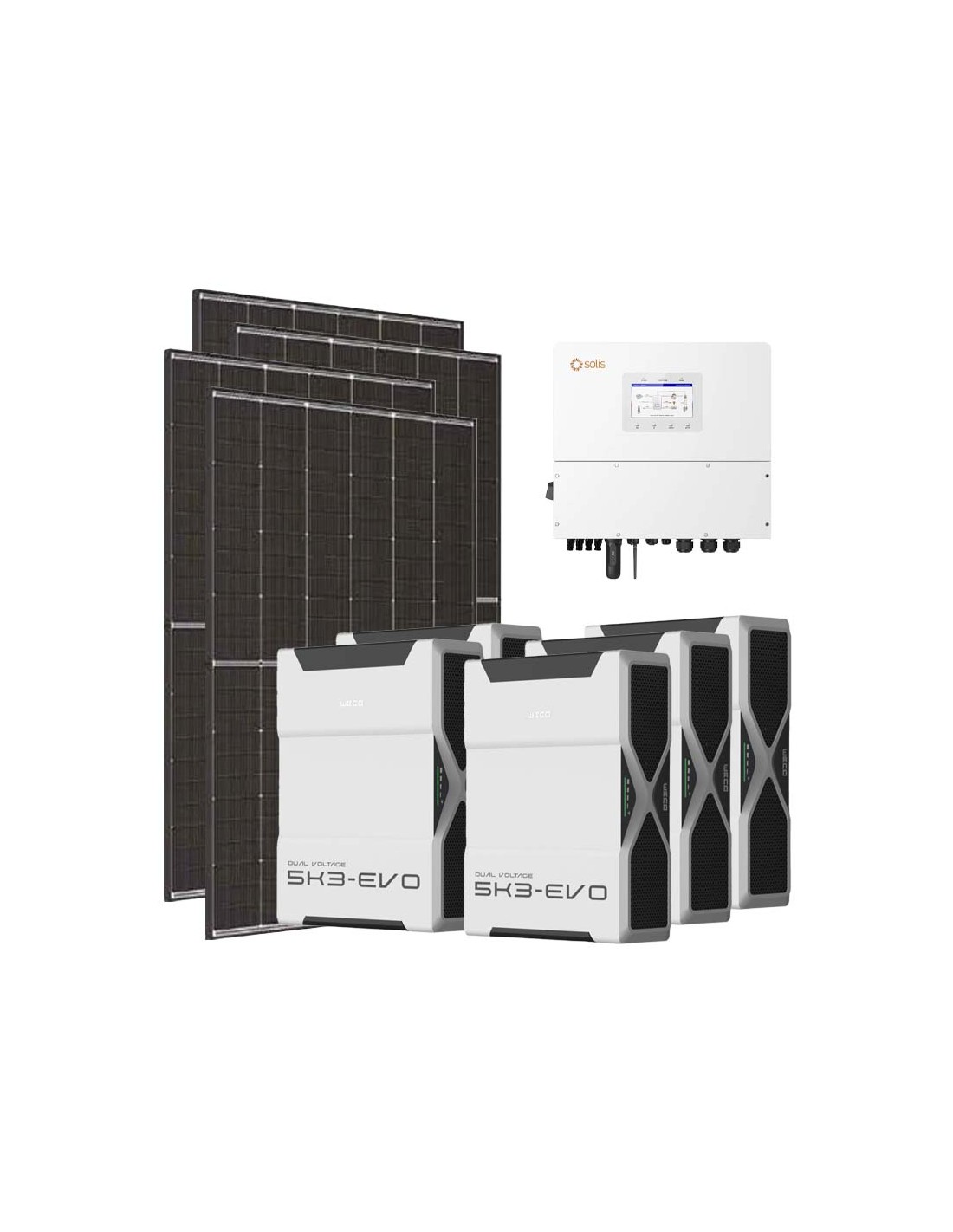 Three-phase photovoltaic kit 15470W 15kW Solis inverter 26.1kWh Weco EVO 5k3 lithium battery