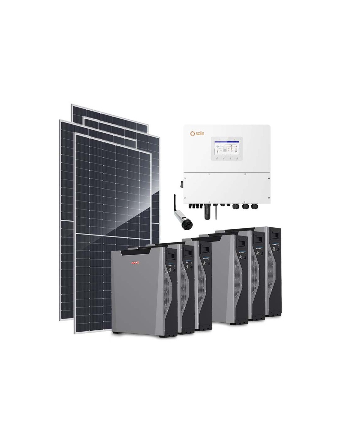 Three-phase photovoltaic kit 20400W 20kW Solis inverter Weco 5k3 XP 37.59kWh lithium battery