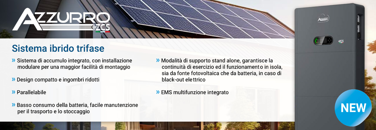 Sistema di accumulo All in one trifase inverter 6kW accumulo 5.12kWh Zucchetti ZCS Azzurro Pacchetto ZCS Azzurro KSA-EP-6.0HYD-ZCS-3PH-5.12 Login o registrati per vedere i prezzi Visualizza