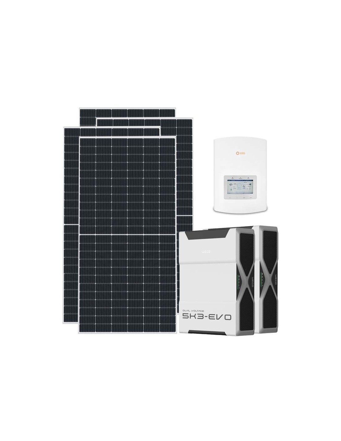 Kit fotovoltaico monofase 5265W inverter 5kW Solis litio 15.66kWh Weco EVO 5k3