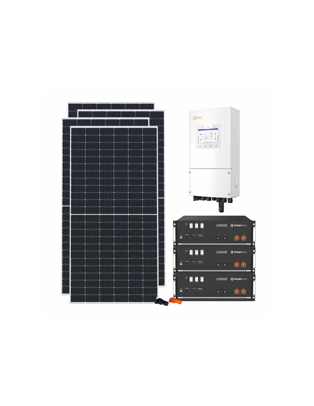 Kit fotovoltaico monofase 9360W inverter 8kW Solis batteria al litio 14.4kWh Pylontech US5000