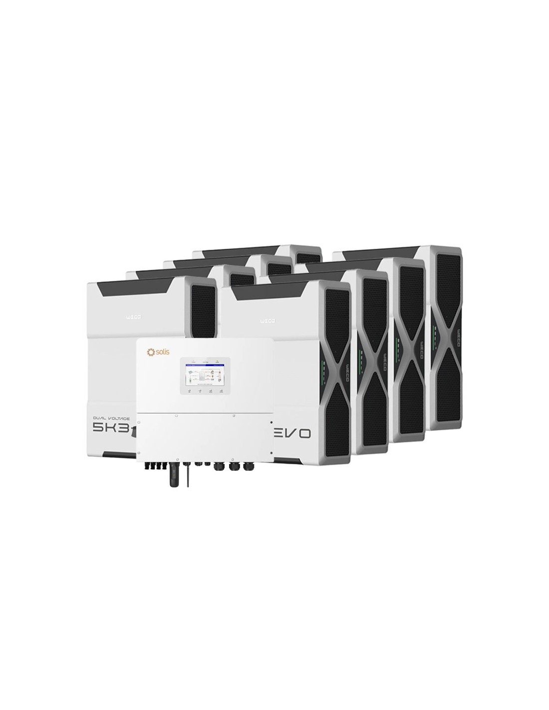 Sistema di accumulo trifase inverter 12kW Solis batteria al litio 31.32kWh Weco EVO 5k3