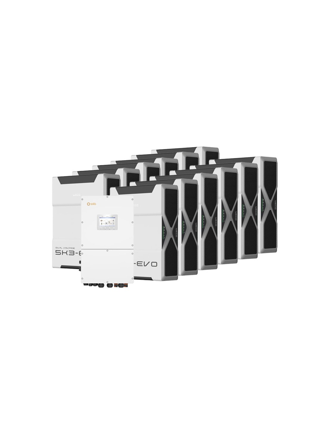 Sistema di accumulo trifase inverter 50kW Solis batteria al litio 52.2kWh Weco EVO 5k3