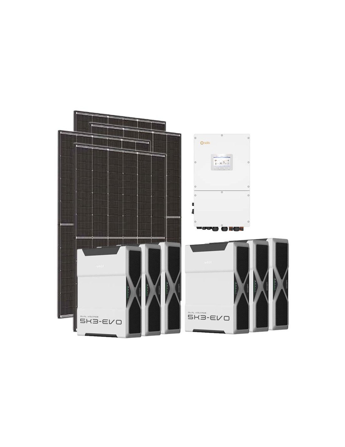 Kit fotovoltaico trifase 15300W inverter 15kW Solis litio 20.88kWh Weco EVO 5k3