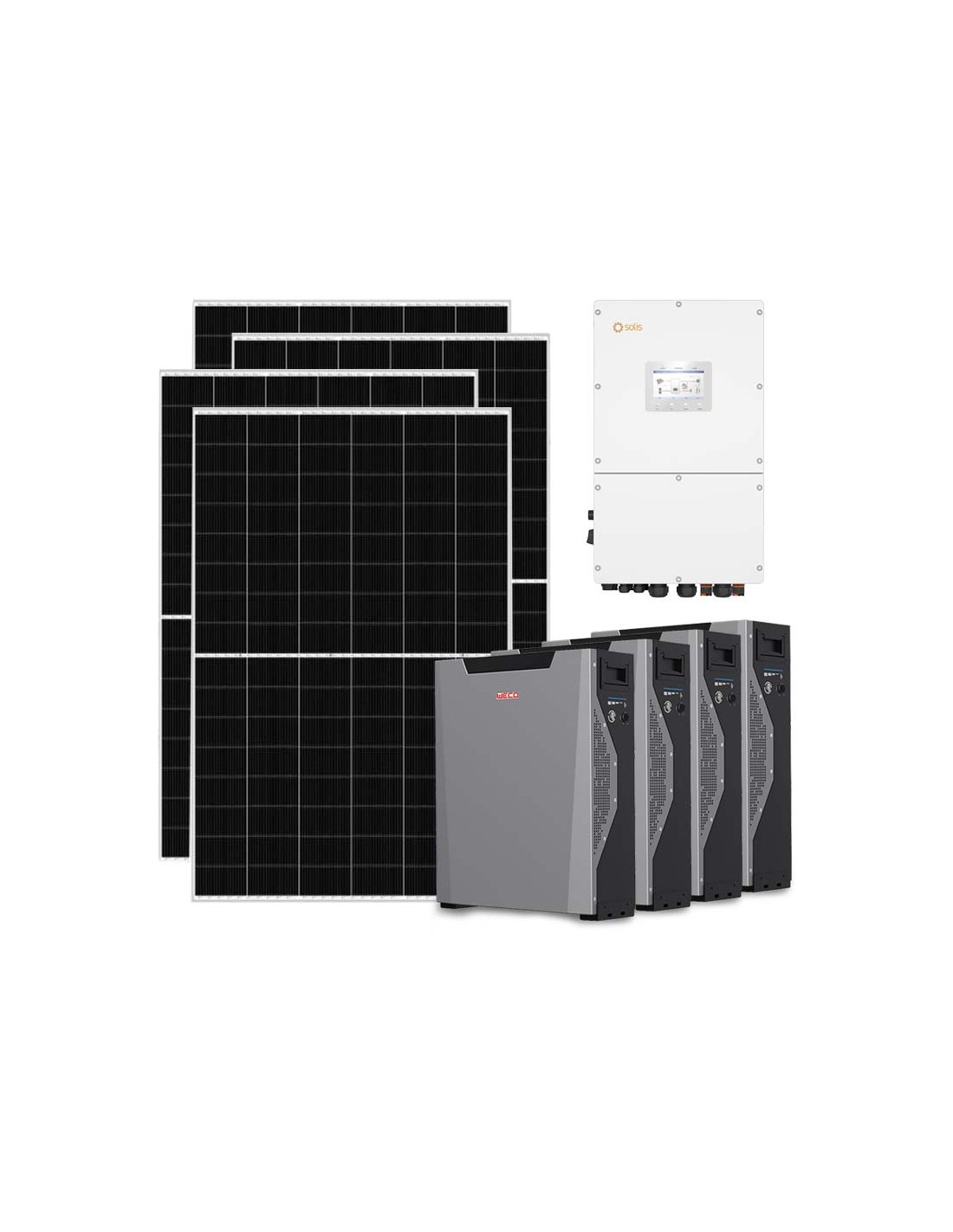 Kit fotovoltaico trifase 30030W inverter 30kW litio 21.48kWh Weco 5k3 XP Solis