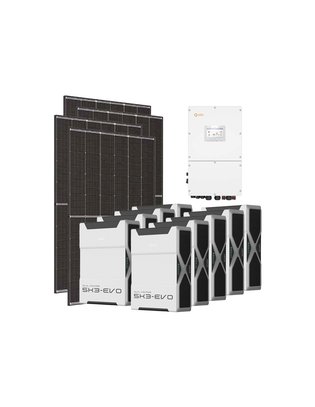 Kit fotovoltaico trifase 30030W inverter 30kW Solis litio 41.76kWh Weco EVO 5k3