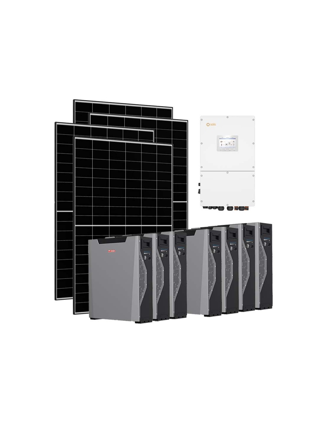 Kit fotovoltaico trifase 30080W inverter 30kW Solis batteria al litio 37.59kWh Weco 5k3 XP